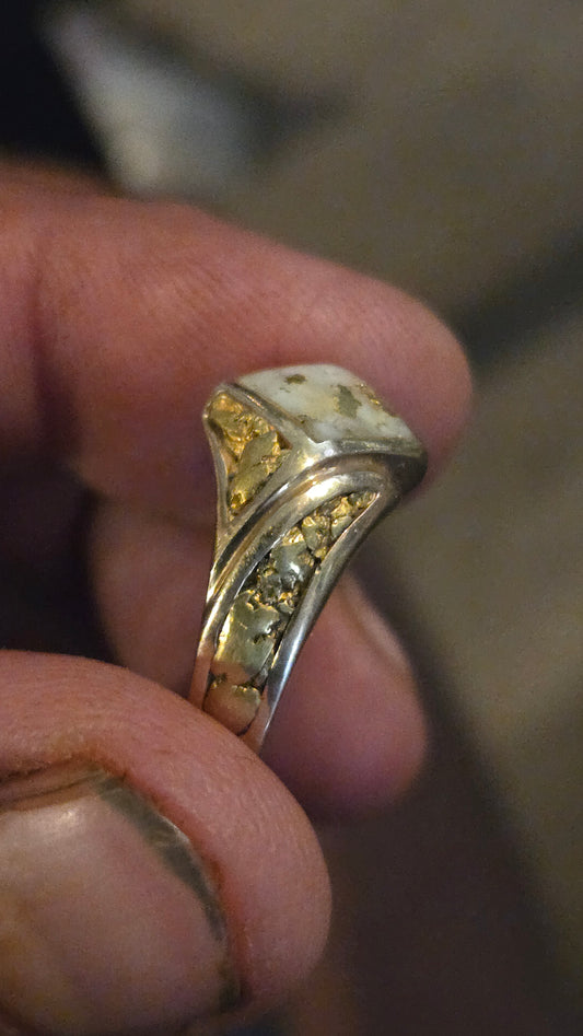 14k gold nugget and quartz gold ring size 11.5 - 11.59 grams