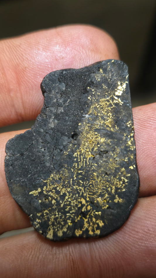 Black quartz and gold slab - 6.67 grams - 3.44 mm - polished