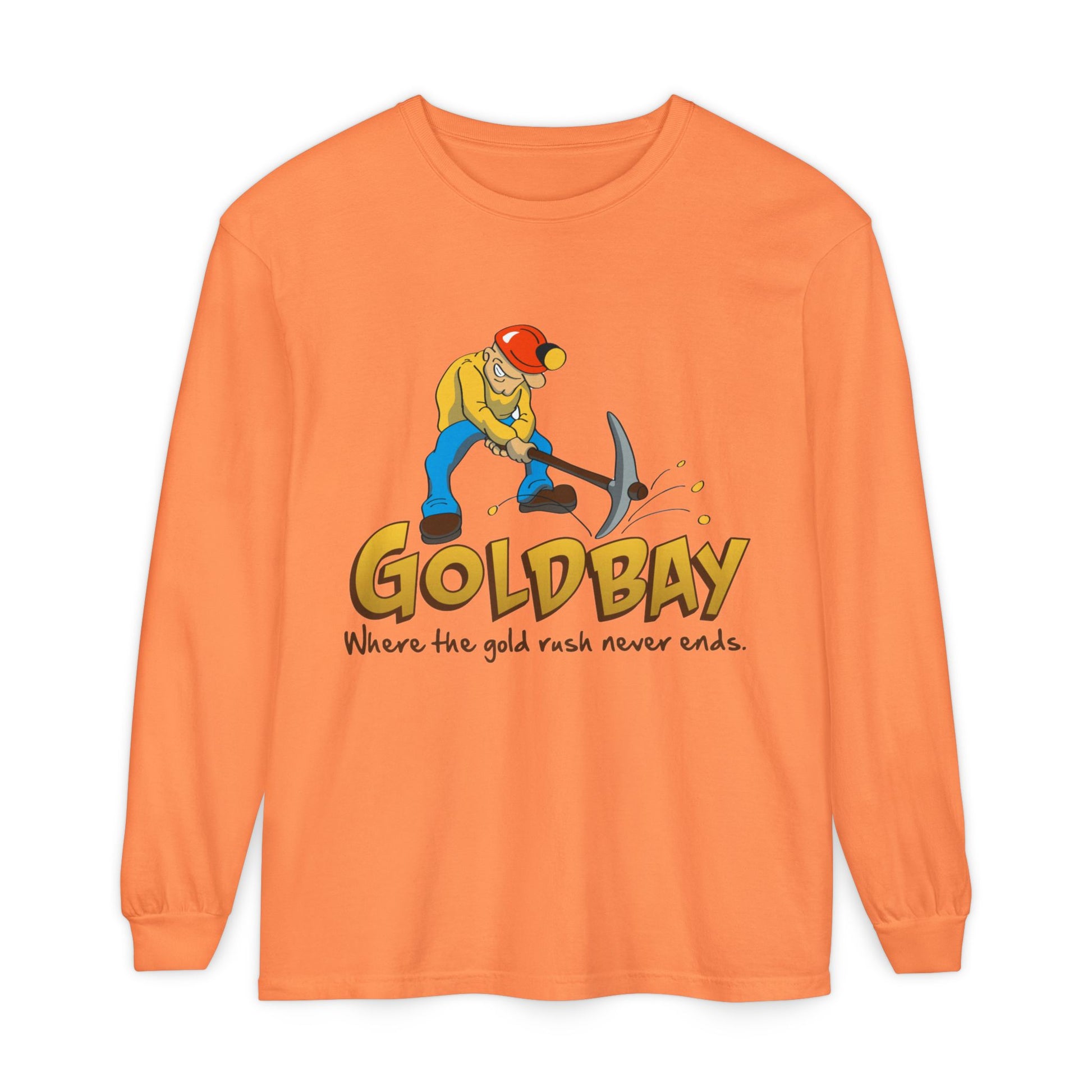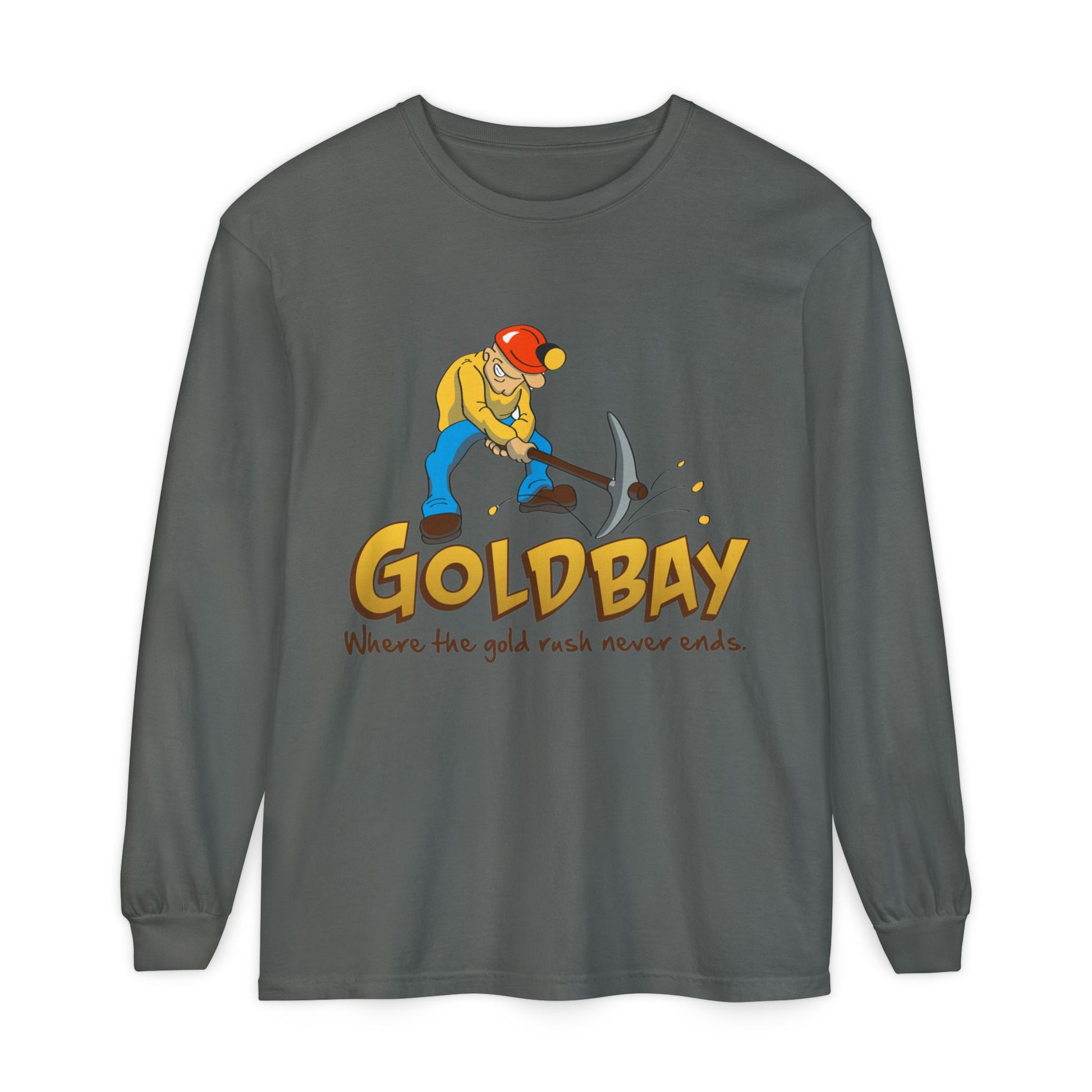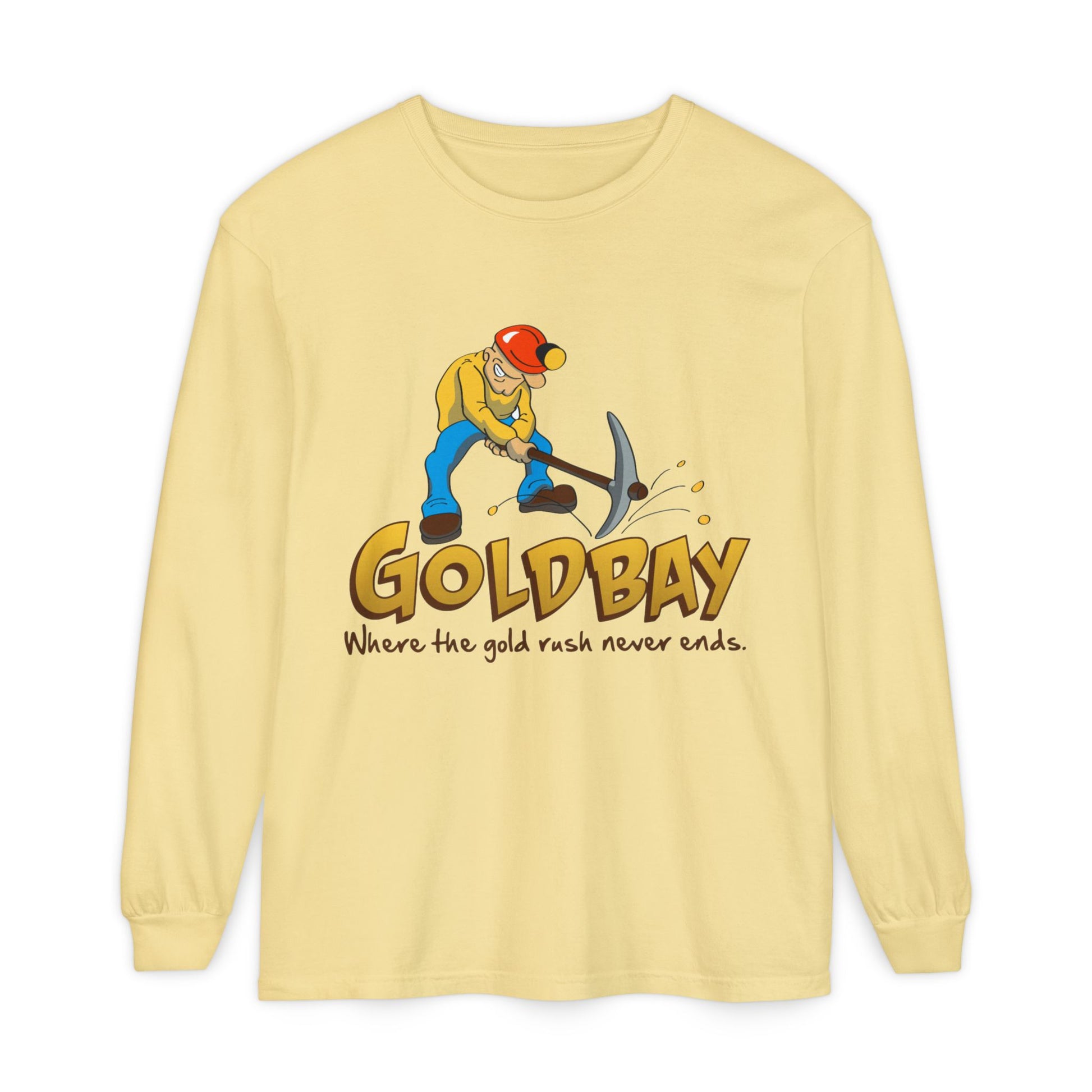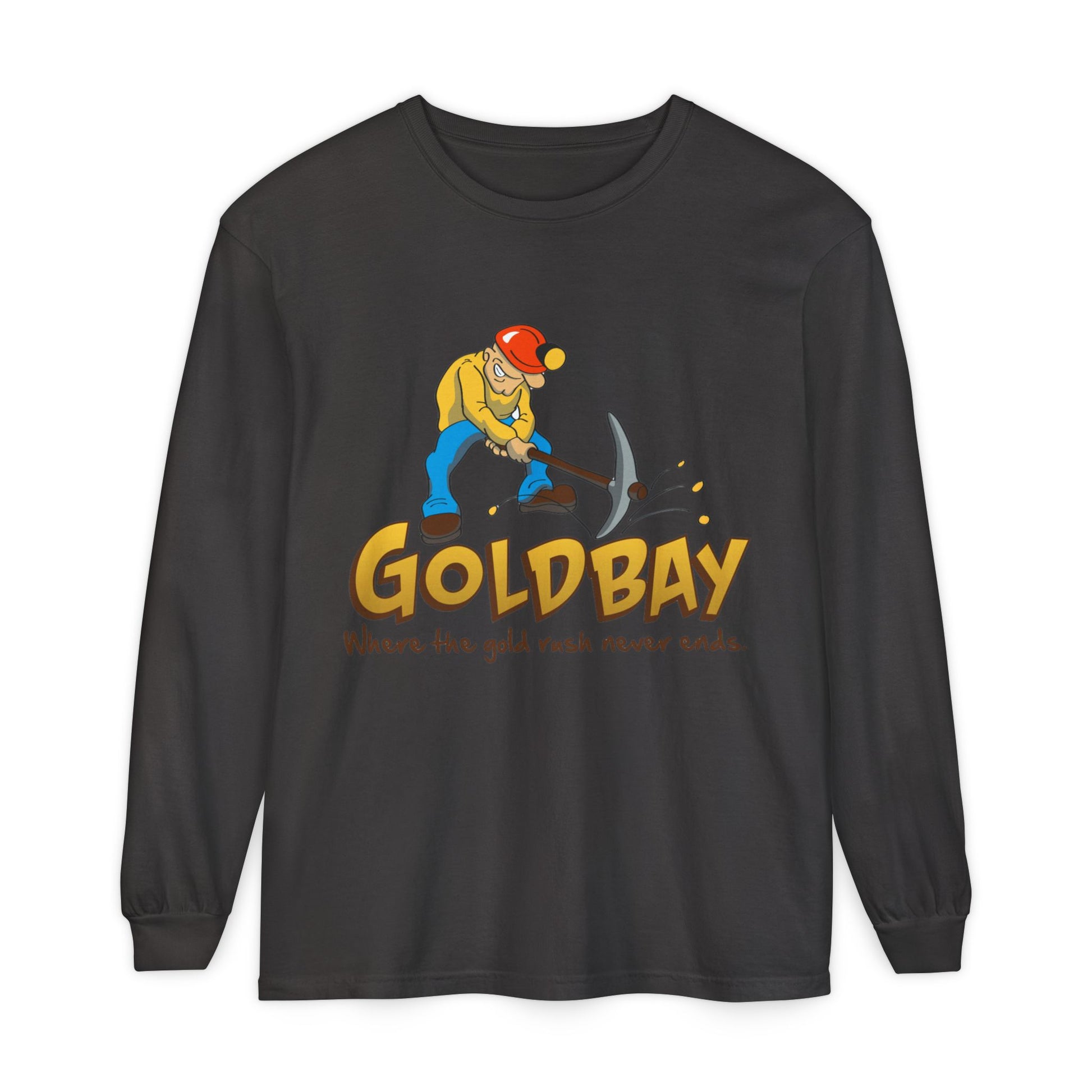 Gold Digger Long Sleeve T-Shirt — 'Gold Bay' Miner Graphic, "Where the gold rush never ends."