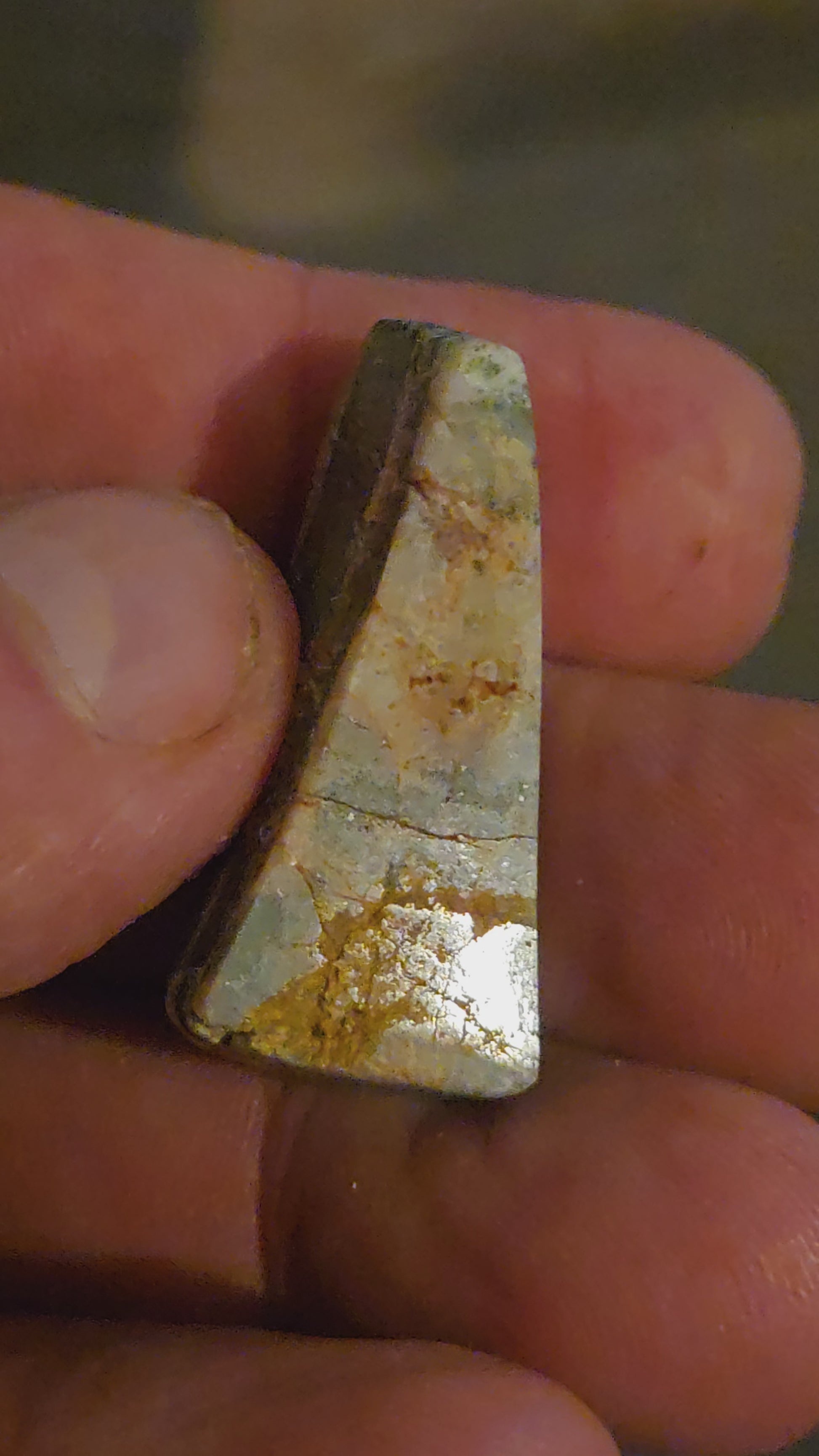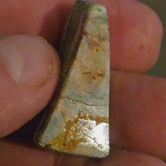 This stunning 14.72-gram specimen showcases fine wire gold shimmering through beautiful layers of mariposite, polished to reveal every intricate detail. The gold runs like delicate threads through the natural green and gray mariposite, creating a rare contrast of color, texture, and brilliance that makes this piece truly one-of-a-kind.